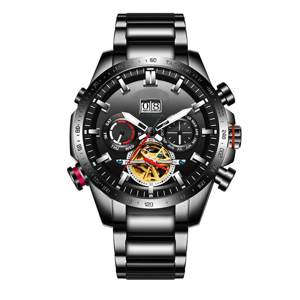 Luxury Waterproof s Watches Stainless Steel Case Back Tourbillion Automatic Mechanical Wristwatches